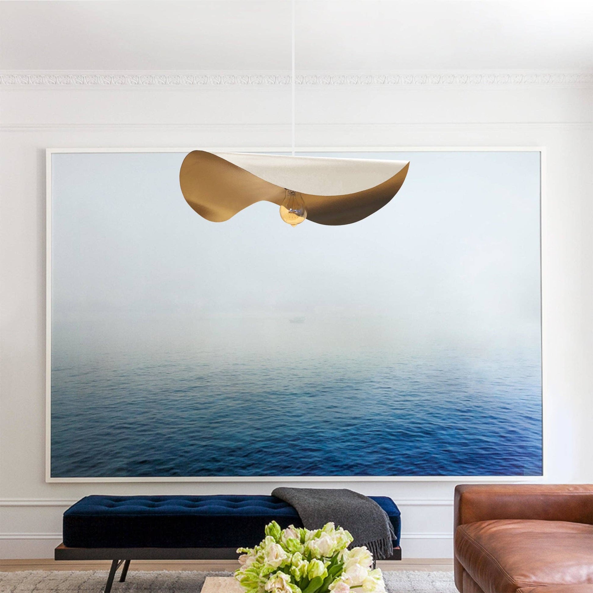 GRANDE MADAME - Suspension Lady's Hat in White Ivory and Gold The iron sheet worked by real craftsmen, beaten and wound by hand, protected by epoxy paint, a guarantee of longevity and the gold-colored interior, for a more vibrant light reflex, gives this exquisite suspension a unique and exclusive look. Abstract shaped ivory white and gold steel lamp shade E27 socket x1 light Bulb not included recommended: 7W LED (halogen, max. 40W) globe type G30 Multi-direction light projection Electrical network connection: isodom connection box Switch not included Vintage style Protection class II Protection class: IP20 Dimmable, dimmer not included Operating voltage: 230V Power supply: 230V Lampshade dimension: Height 13cm x Length 40cm x Width 40cm Overall dimensions: Height 65cm x Length 50cm x Width 50cm Weight: 1.5 kg