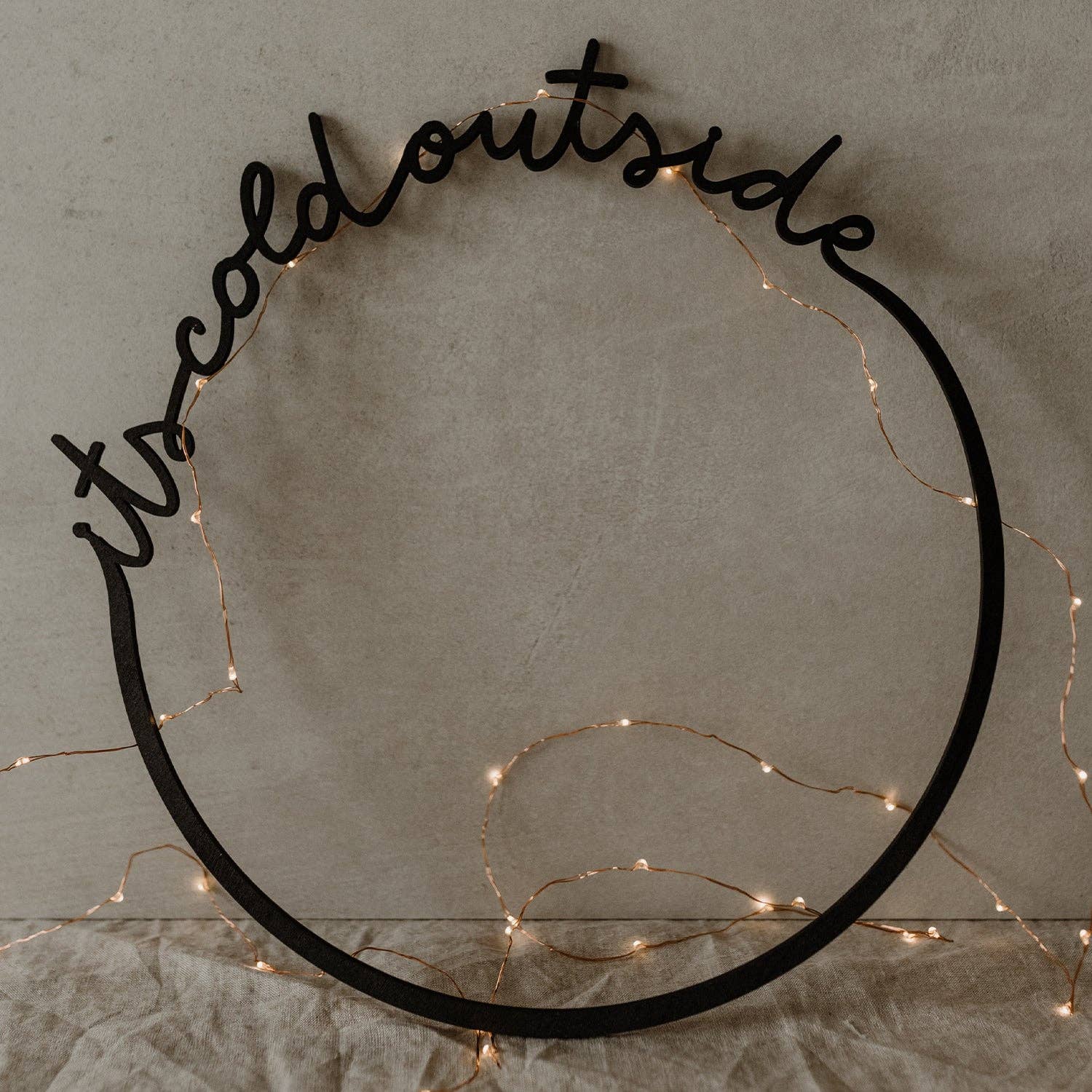 Then you will really like our wooden wreath "it's cold outside" in black!   A wonderful Christmas decoration that you can decorate individually as you wish. Material: Laser-cut wood Black lacquered Format: The wreath has a diameter of approx. 33.5 cm and is approx. 5 mm thick